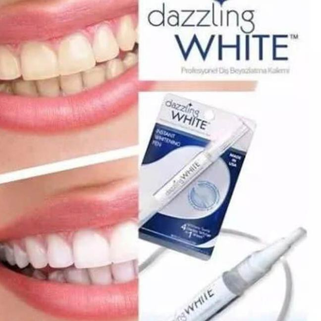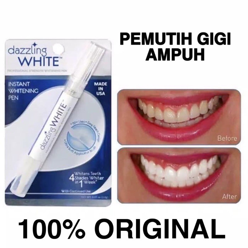 DAZZLING WHITE INSTAN WHITENING PEN - PEMUTIH GIGI INSTAN ORIGINAL USARp12000. Produk pemutih gigi berbentuk pen ini berisi gel pemutih gigi dengan bahan aktif polyvinyl pyrrolidone. PRODUK UNGGULAN 1 Top Selling Teeth Whitening Kit di Indonesia.